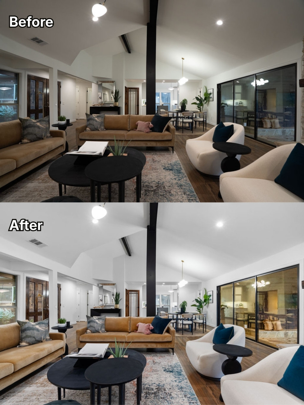 These are the property photos at 3020 Montego 160 that the Picpee platform has just completed. From an original photo with uneven lighting, obscuring detail and unclear colors in the room, these are clean, bright, and beautiful images.