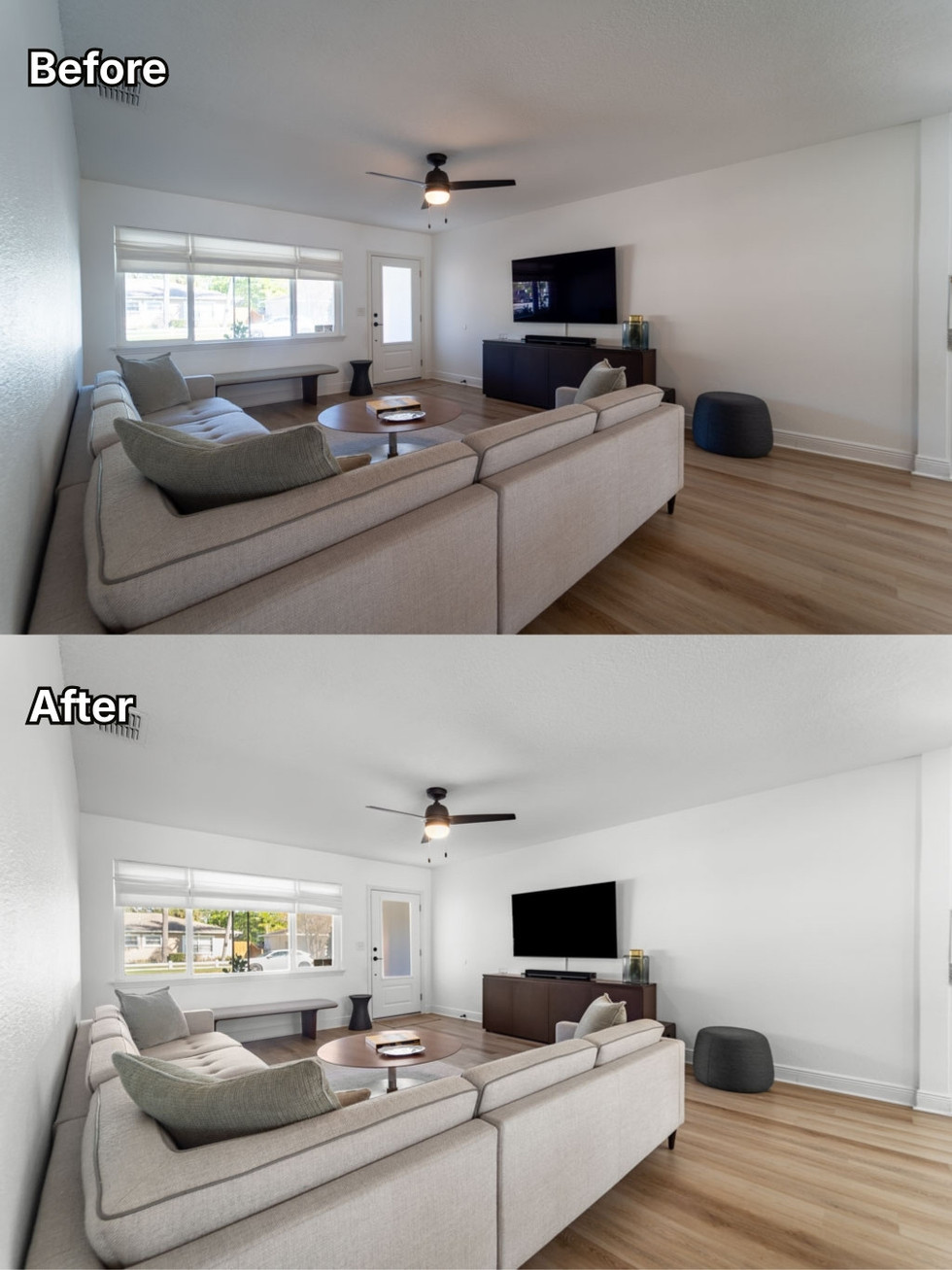 These are real estate images that Picpee transformed from raw photos into stunning images. From a raw photo with color bleeding and harsh window lighting, we balanced the lighting, clarified the true colors of the interior, and made the images sharp and appealing.