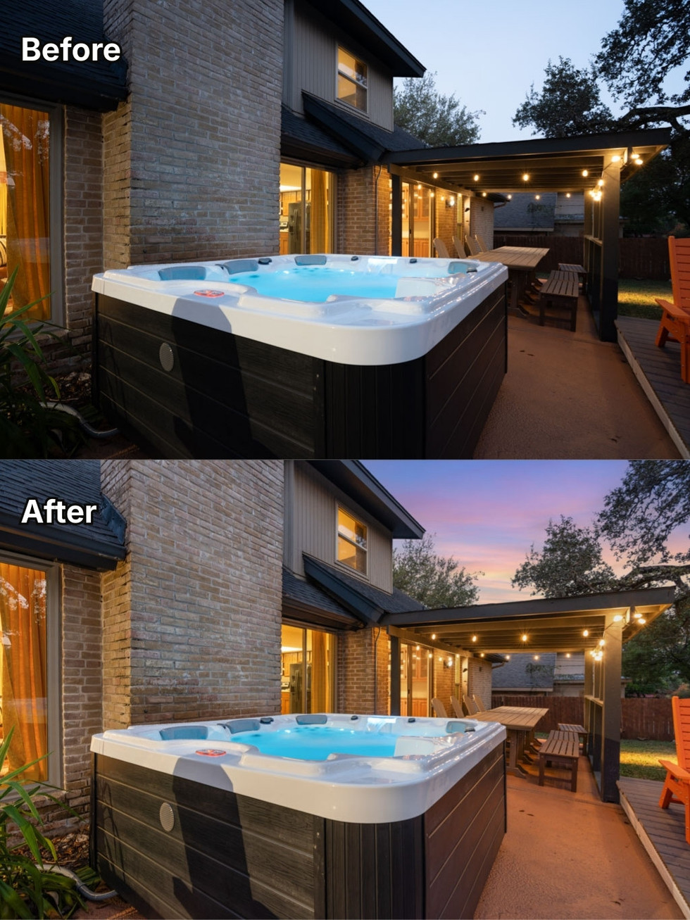 Picpee's Day to Twilight service transforms daytime photos into stunning twilight scenes, highlighting the architecture and emotional appeal of the property. The beautiful, subtle lighting and naturally processed lighting system create images that are luxurious and captivating from the very first moment. This is the optimal solution for enhancing the visual value of any listing.